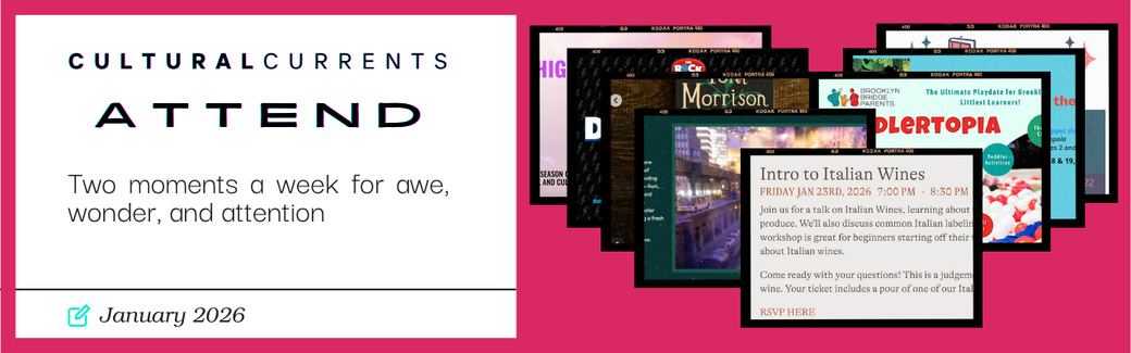 Starting in April, Cultural Currents: Attend will be part of a paid subscriber-only rhythm—curated moments and seasonal lists designed to help you meet your people by showing up where meaning already exists.