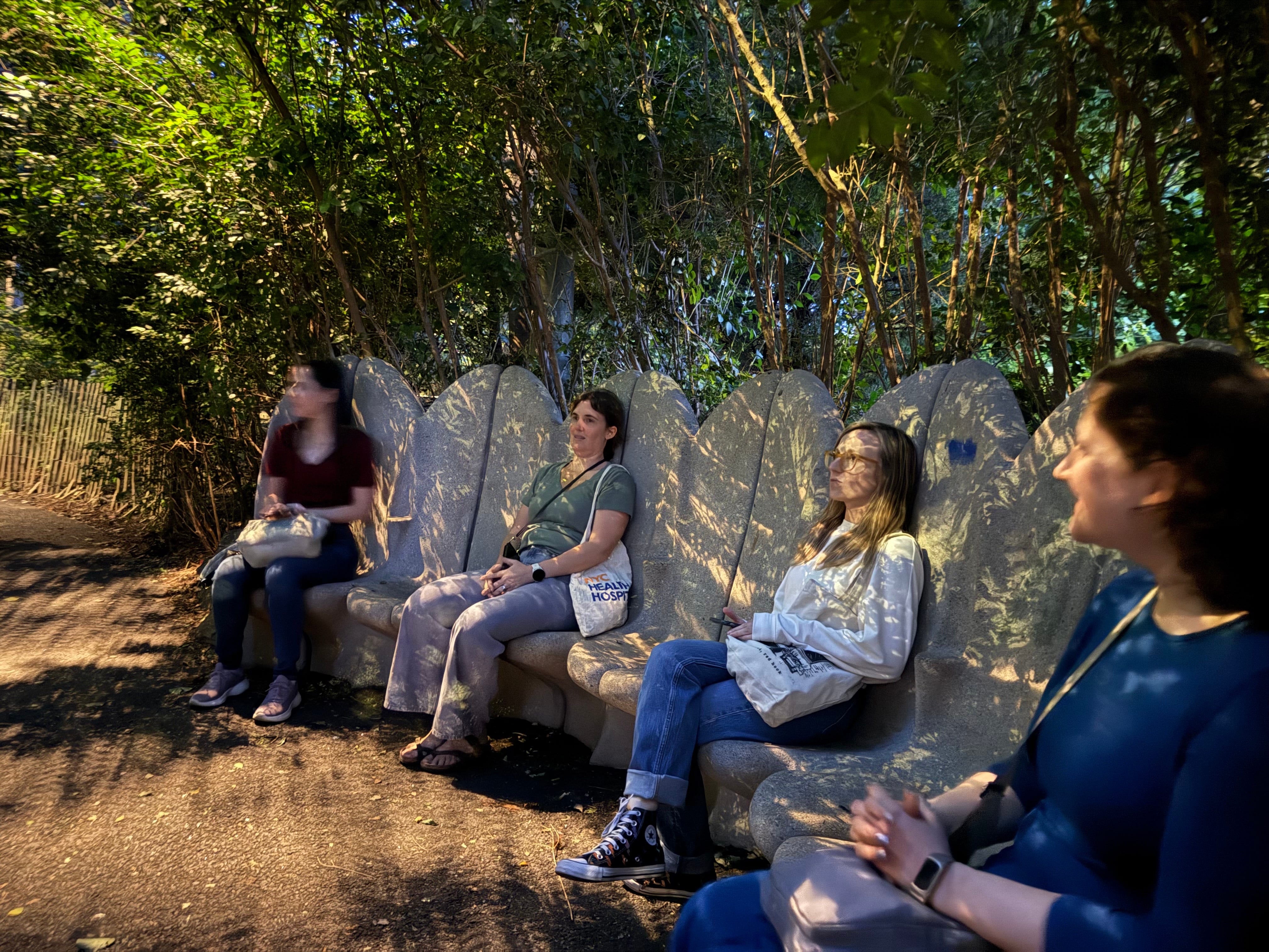 And then we found ourselves on one of the piers of Brooklyn Bridge Park that felt like we had entered the woods. We ventured further in and saw a perfect stone talking circle, ideal for us to face each other while engaging in more personal conversation. We discussed how no matter what a woman does in a challenging situation, she doesn’t win.